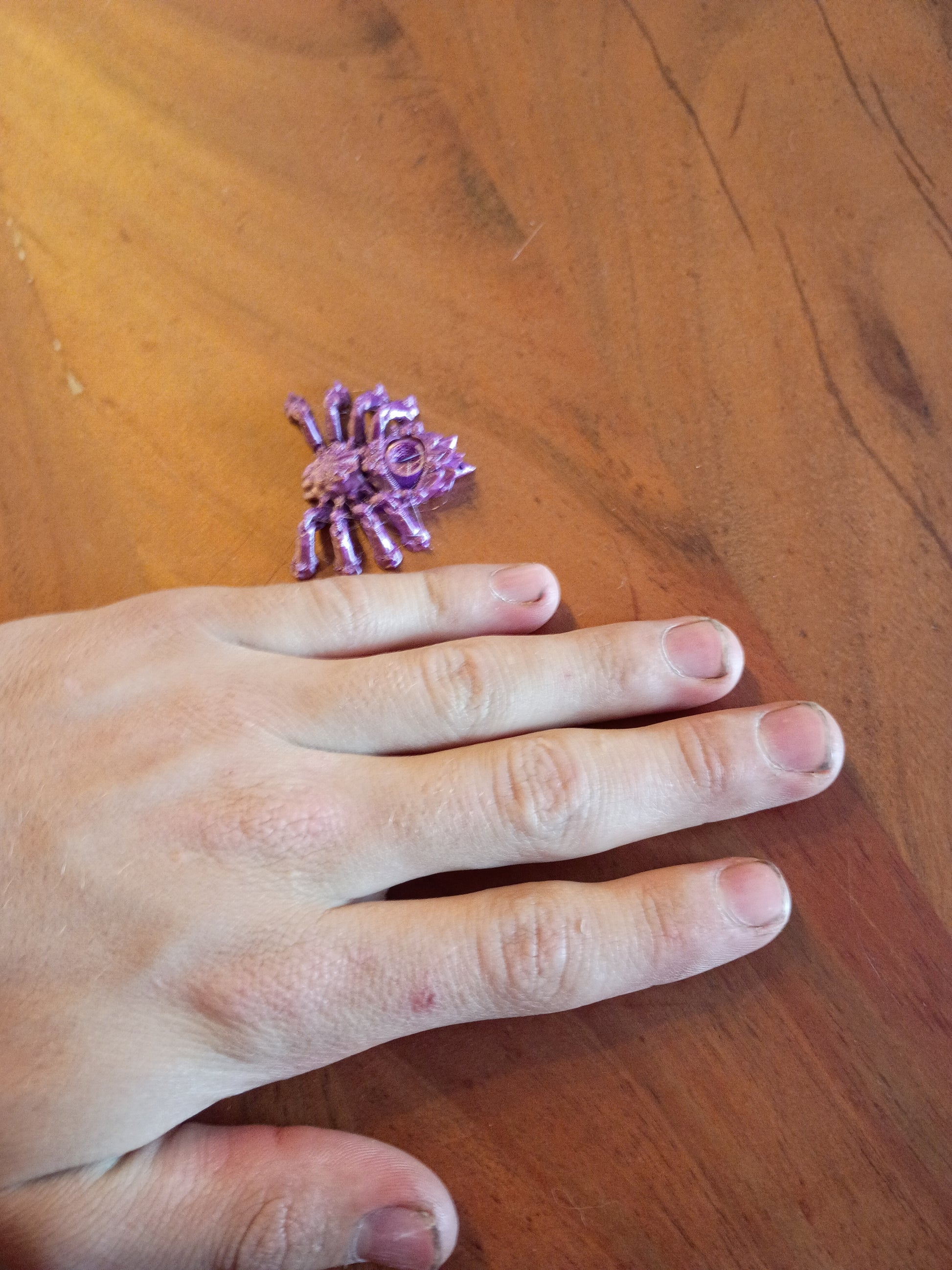 This is a fun little decoration that can be set out or worn as an eating! Well, the smaller size. The larger size is just a great decoration that has movable legs and is fun to play with. The smaller size does not have movable legs, as the will break if you try to reposition them. And you can also get two small ones for $3, and four for $6.